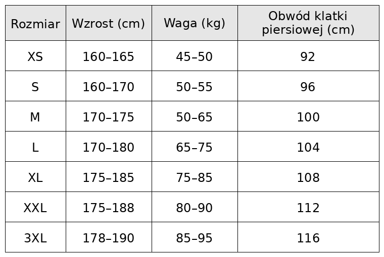 Zalecamy wybór rozmiaru większego, aby uzyskać luźniejszy krój.
